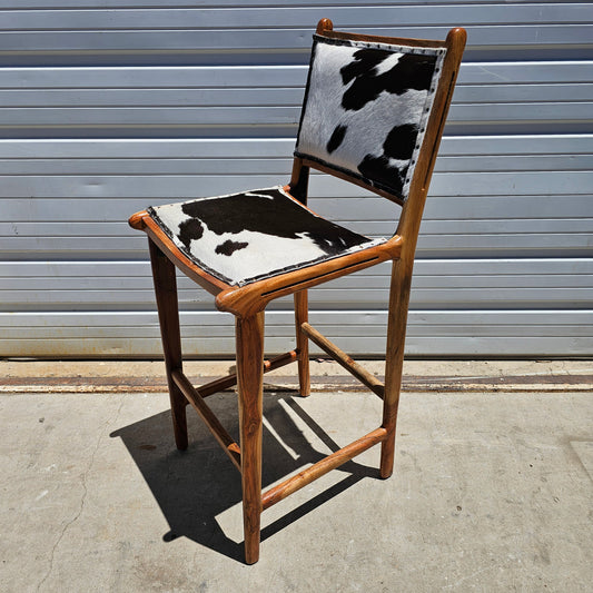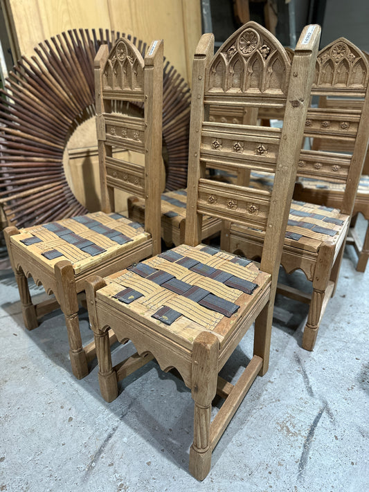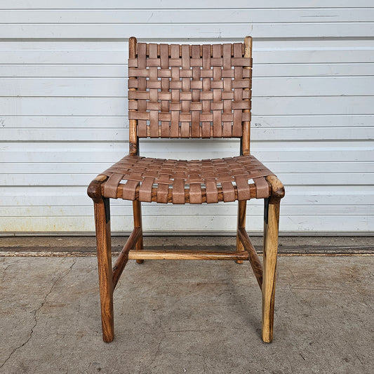 Wood Dining Chair w/ Woven Leather Seat and Back