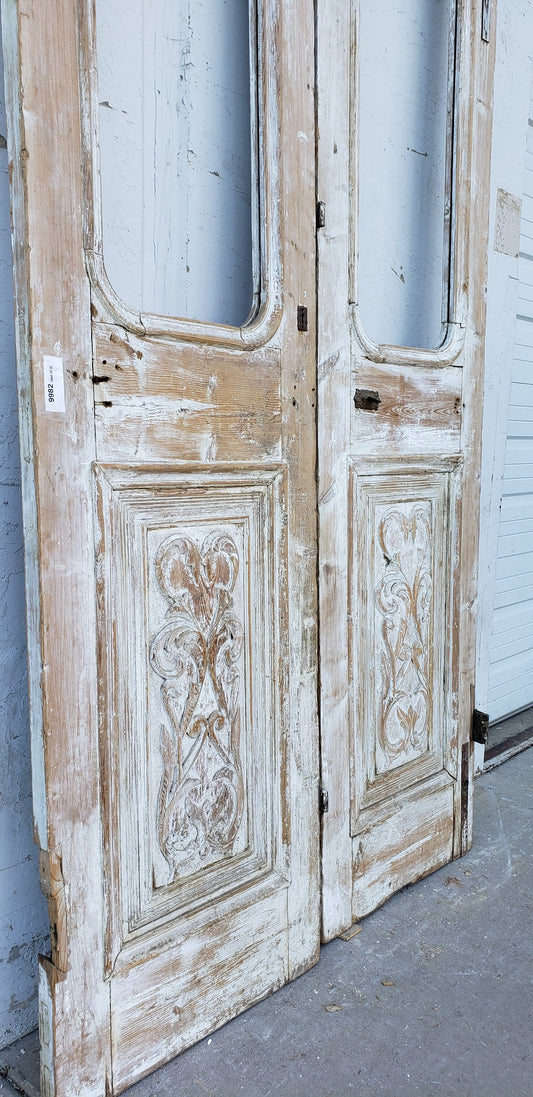 Pair of Washed Doors/Windows with w/8 Lites and Arched Transom