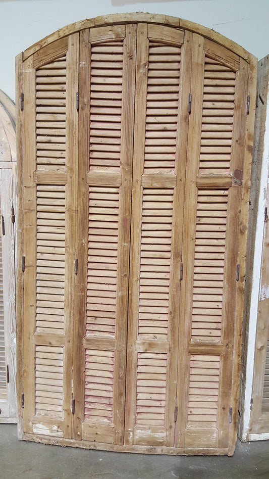 9 Pane Arched Natural Wood Window and Shutter Set
