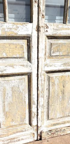 Pair of 2 Panel 7 Lite Washed Wood French Doors
