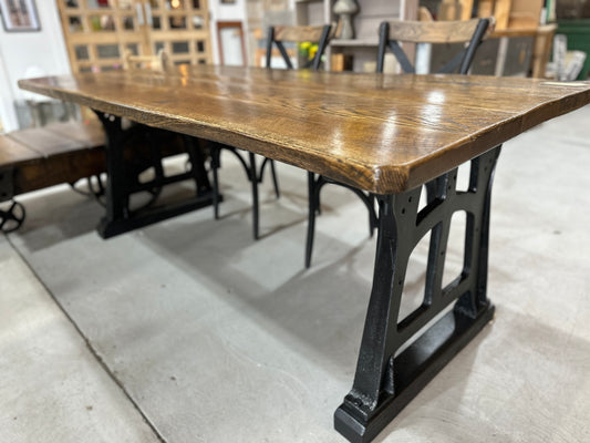 Oak Top Deco Dining Table with Cast Iron Base