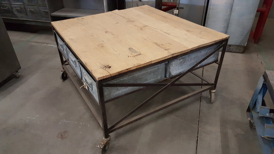 Industrial 8-Drawer Rolling Concrete Top Coffee Table