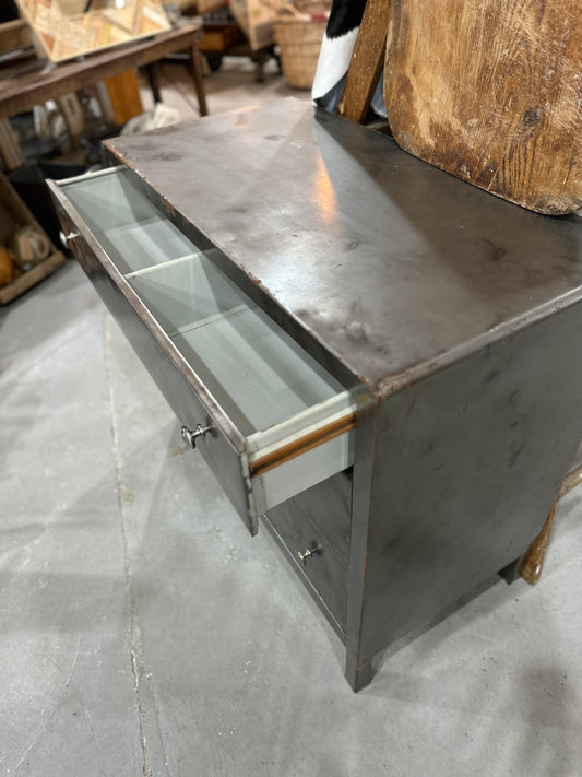 Three Drawer Stripped Metal Dresser