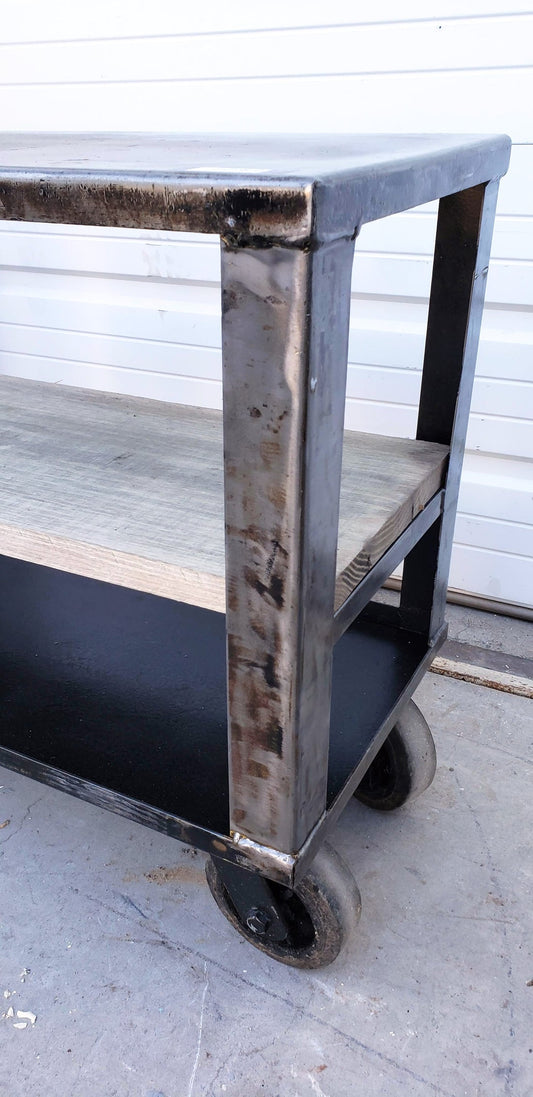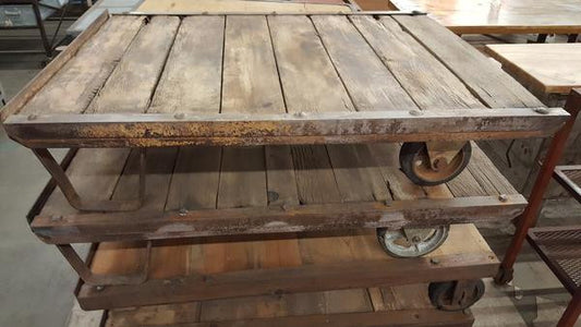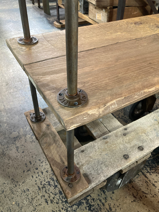Industrial Push Cart with Iron Pipe Coat Rack, Clothing Rack