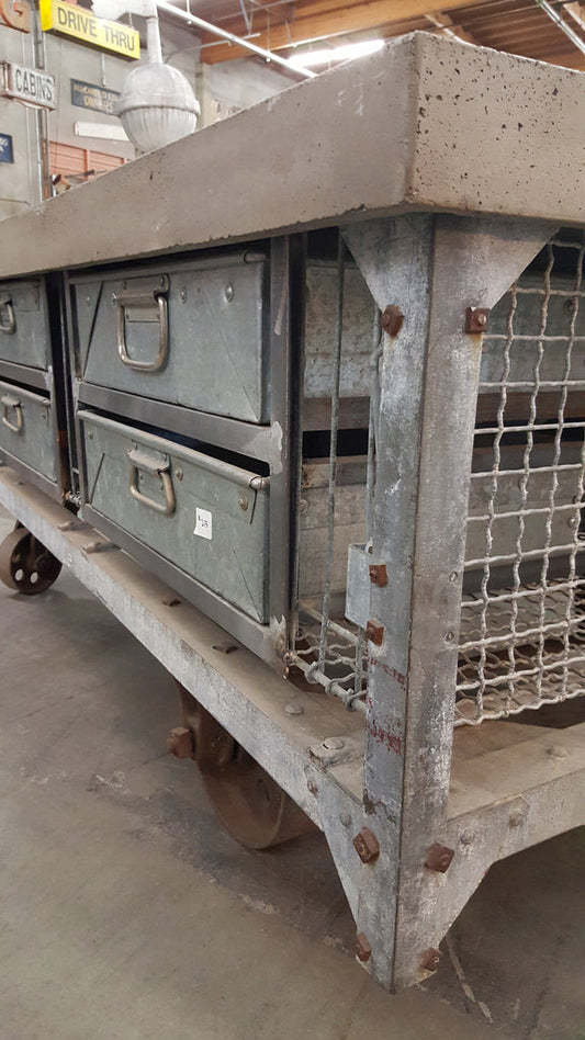 Industrial 8-Drawer Rolling Concrete Top Coffee Table