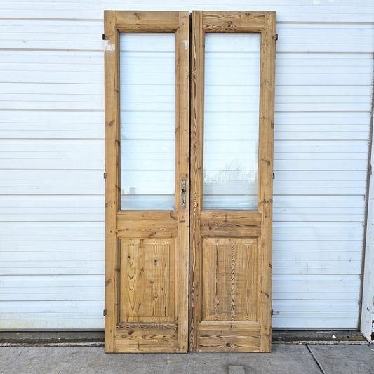 Pair of Wood French Doors with 2 Glass Lites
