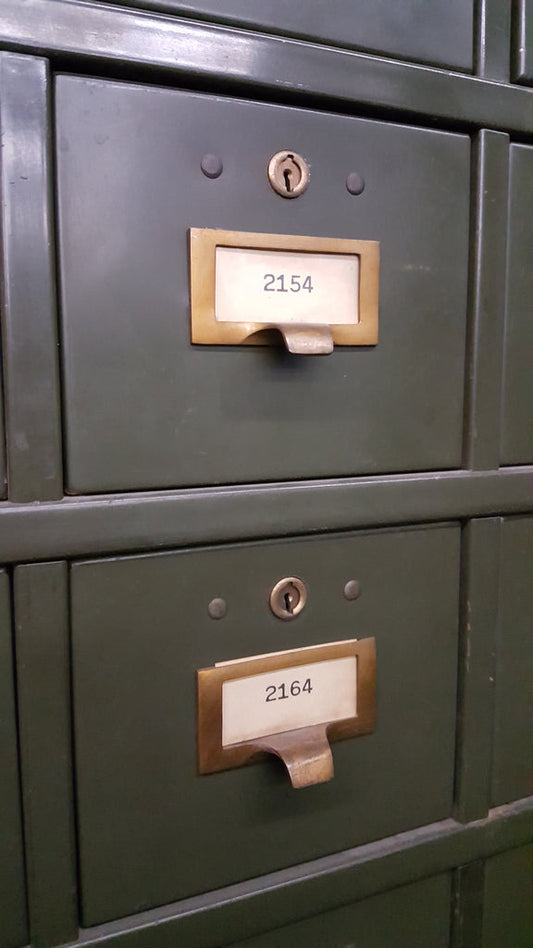 60 Drawer Green Metal "Shaw Walker" Card Catalog