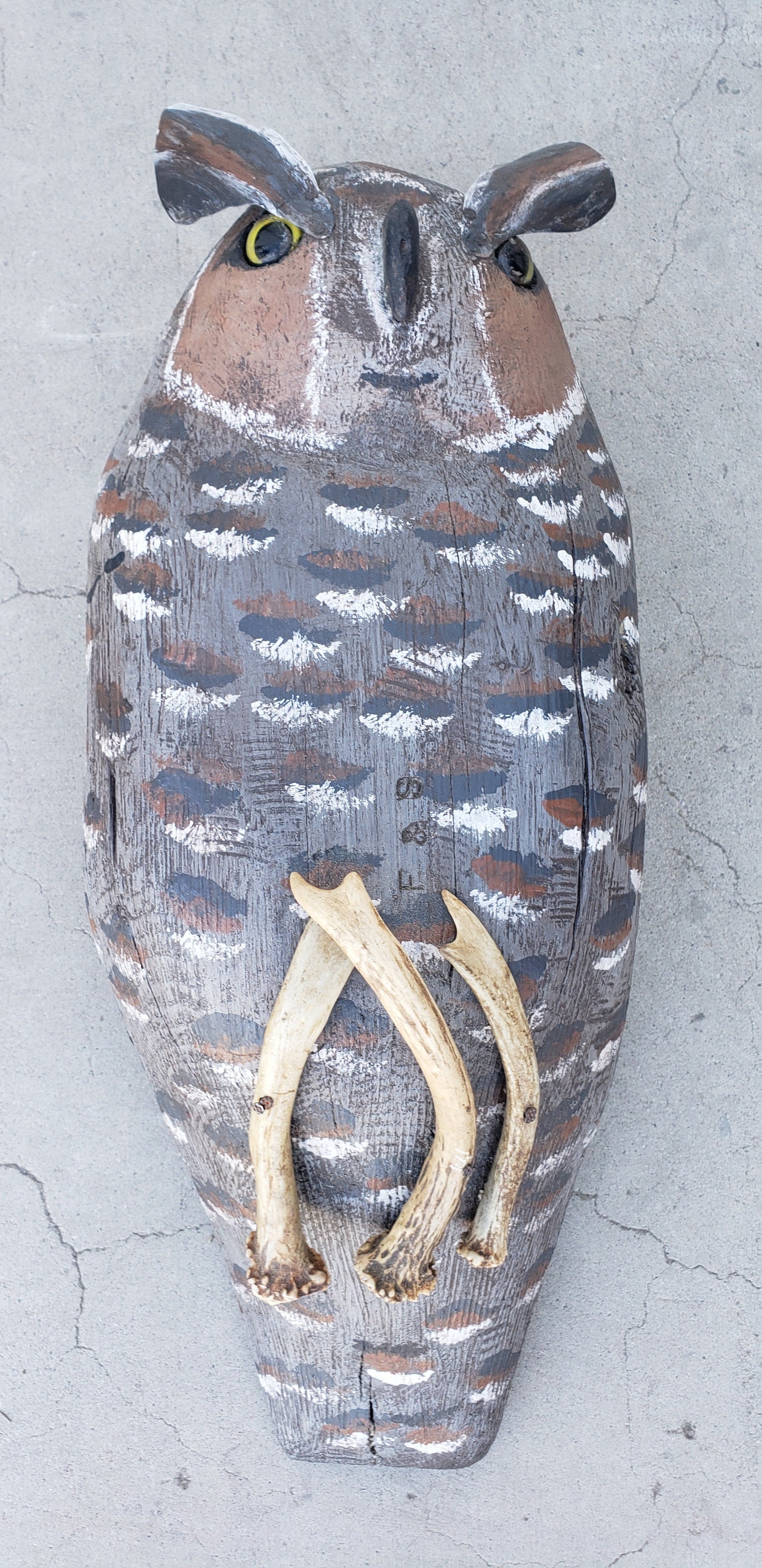 Brown Wood Folk Art Owl by Fred E. Schieber, Jr
